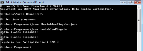 Eingabeaufforderung starten. (Es empfiehlt sich, die Editoren, die Eingabeaufforderung udgl. an der Task-